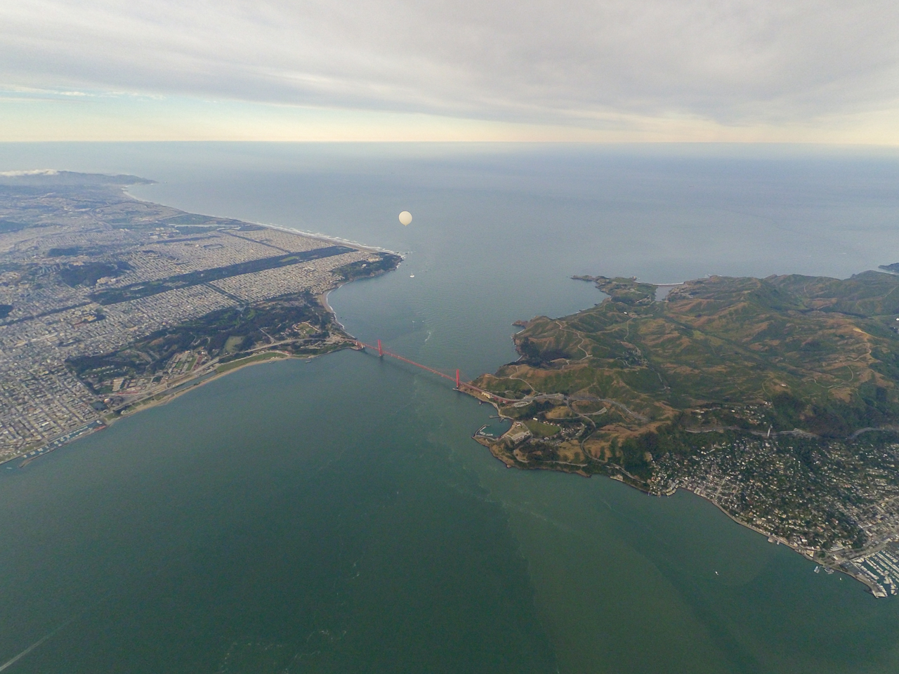Eos I Midnight floating past the Golden Gate, as seen by the Dusk team balloon