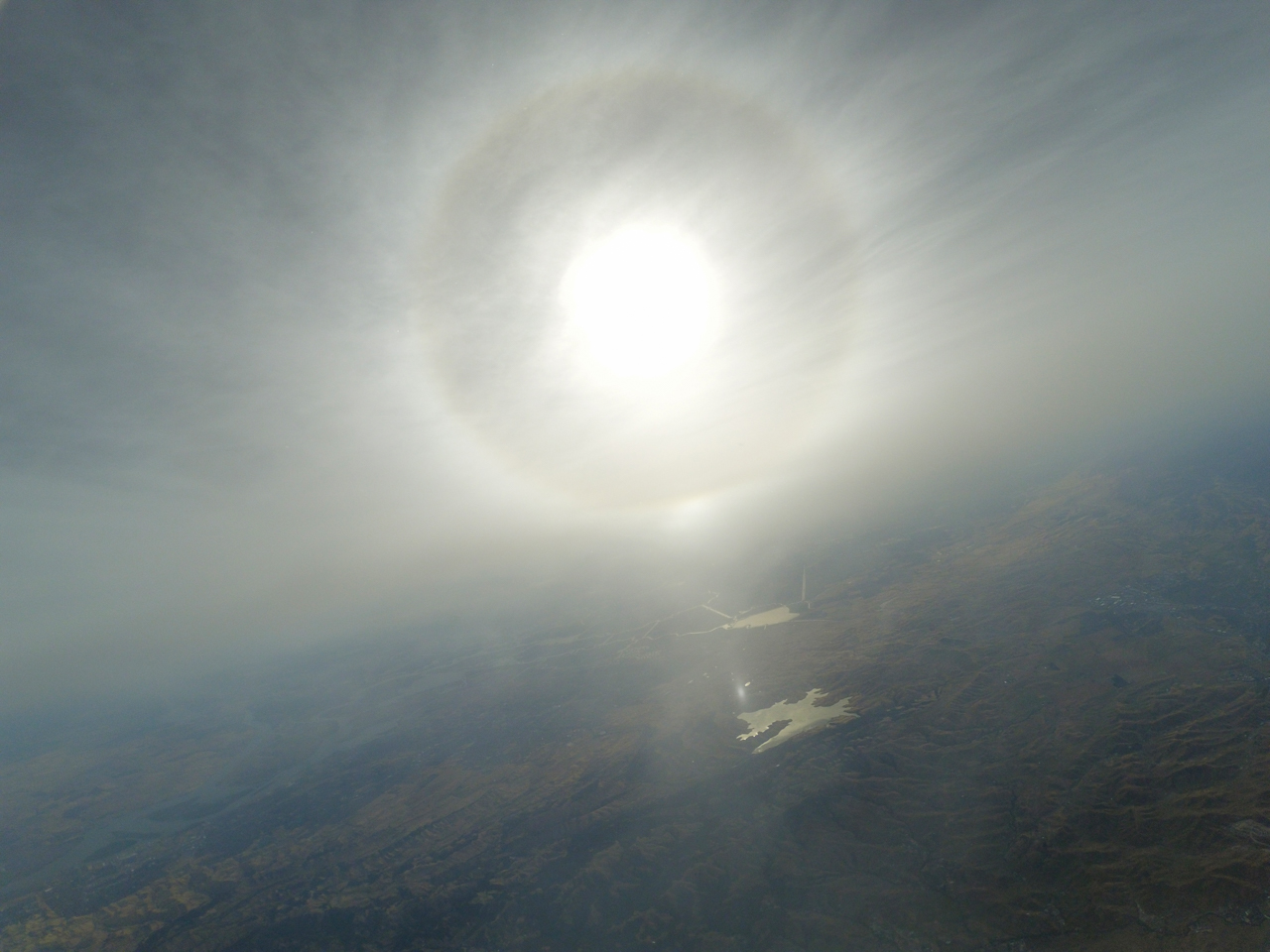 22ยบ halo, lower tangent arc, and subsun seen in cirrostratus clouds from 27,603 feet