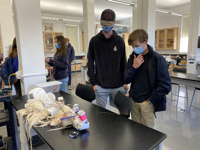 Immersive term Atmospheric Science and Engineering weather balloon project 2021As part of The Bay School's immersive program, "atmospheric science and engineering" students take a three-week course in which they refine their understanding of Earth's atmosphere experimentally, building and releasing weather balloon payloads to record data about different characteristics of the atmosphere. The Eos II mission took place on on June 2, 2021. On June 2nd we launched three weather balloons--named Dawn, Dusk, and Midnight--each equipped with flight computers using Adafruit Feather M0 hardware running Arduino software. We added pressure sensors, an infrared radiation (IR) and humidity sensor, and a temperature sensor. A separate Automatic Packet Reporting System GPS (APRS) transmitter was also attached to send the current location of the weather balloon it was on. Additionally a Spot satellite tracker was added for backup tracking, completing the payload. We launched the balloons from Hensley Lake at 8:13:45 A.M. and each had its own journey.